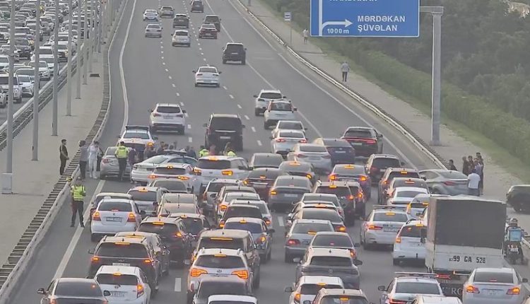Qəza səbəbindən yolun hər iki istiqamətində nəqliyyat sıxlığı yaranıb.