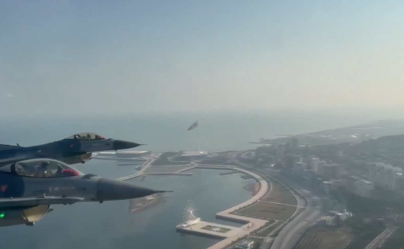 “Azərbaycan Zəfər Gününə qatılaraq Bakıda salamlama uçuşu həyata keçirən Hərbi Hava Qüvvələrimizin döyüş təyyarəsinin göyərtəsindən həmin anlar…”