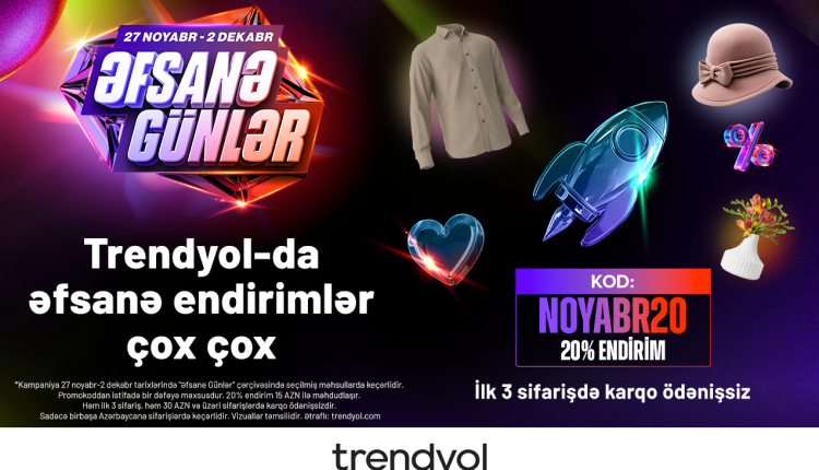 “Trendyol”un Azərbaycandakı istifadəçiləri “Əfsanə günlər” müddətində “NOYABR20” kodu ilə 20% endirim əldə edəcəklər.